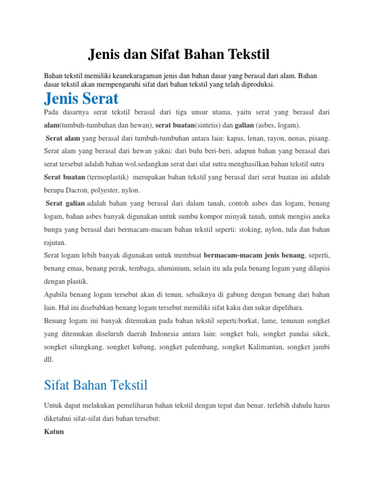 Jenis Dan Sifat Bahan Tekstil Pdf